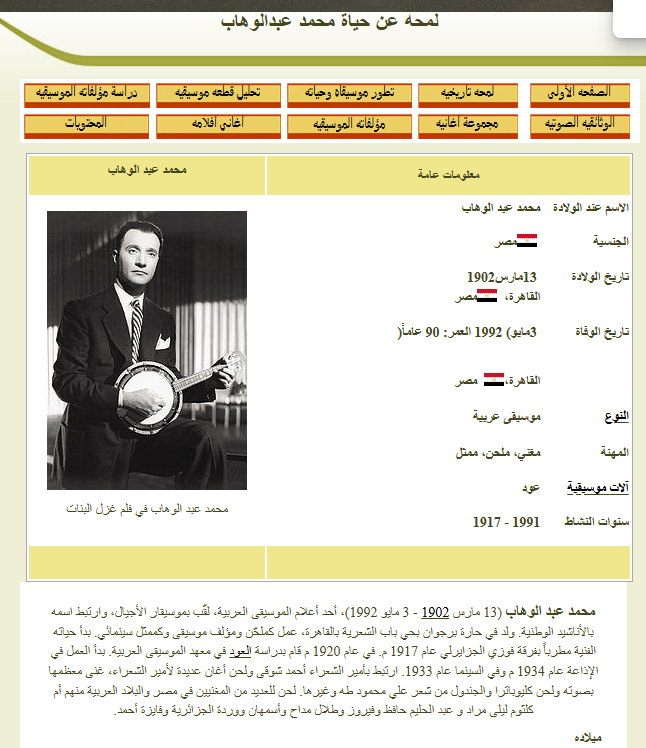 حياة وموسيقى محمد عبدالوهاب